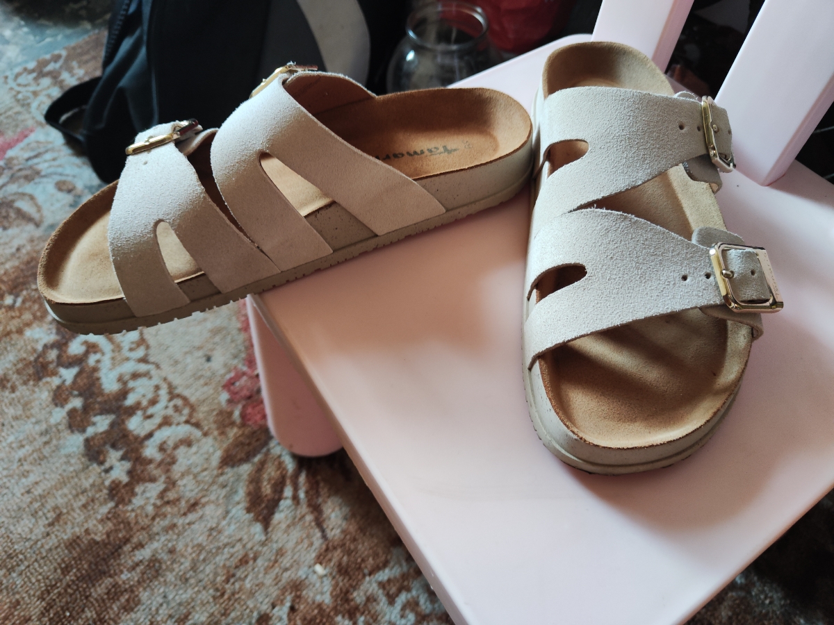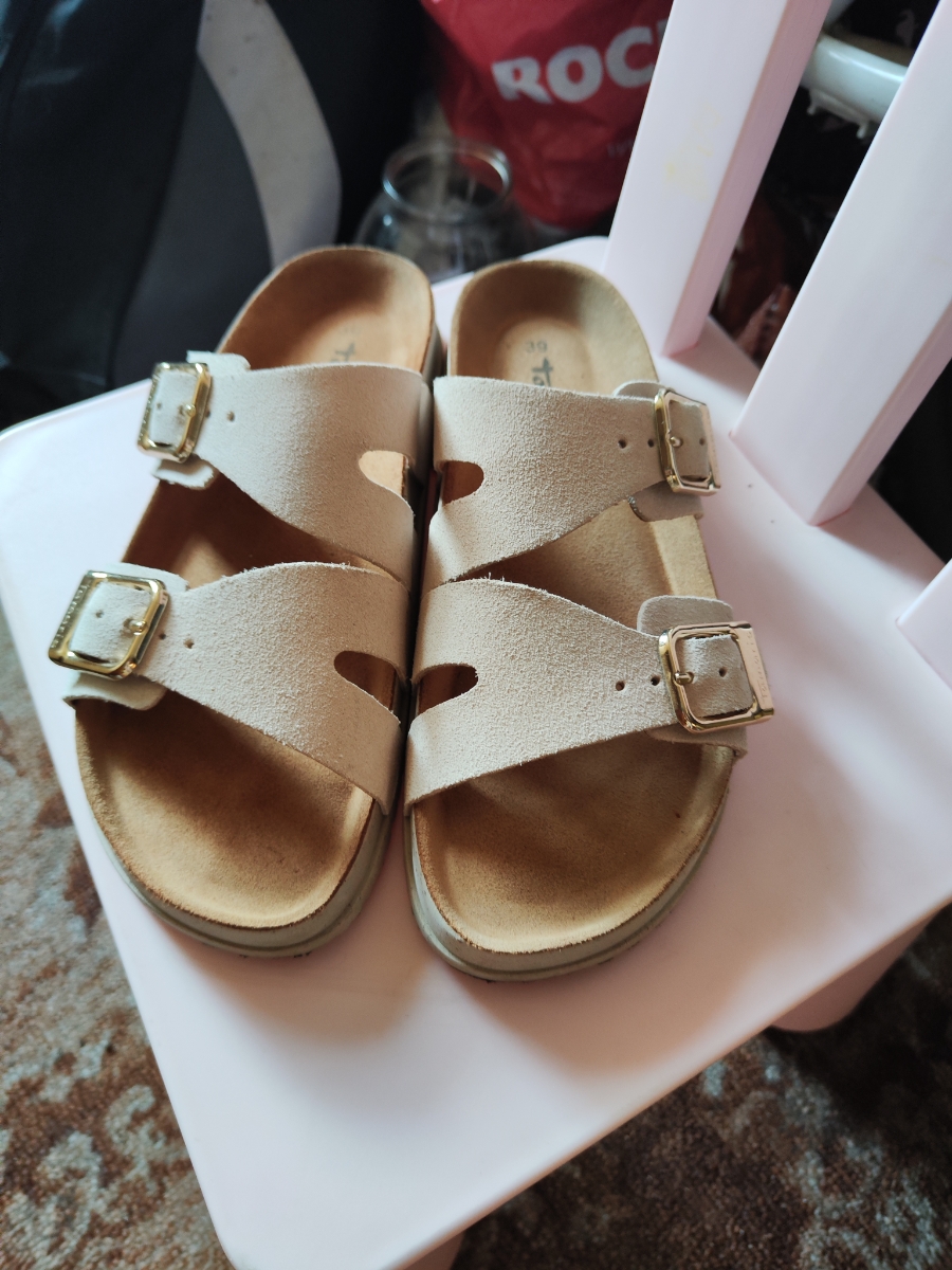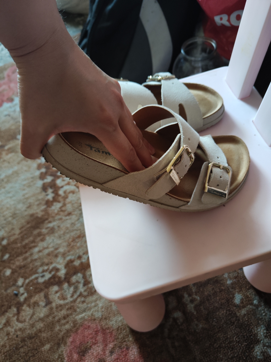 - Молочные городские пантолеты в стиле биркенштоков одинаково хорошо работают и с джинсами, и с романтичным платьем. Городская пара открытой обуви получилась достаточно комфортной. Широкая подошва с выступающим рантом сглаживает неровности дороги, анатомически правильная стелька снижает нагрузку со спины и суставов. Золотистые пряжки на регулируемых кожаных перемычках, которые можно сделать по удобной для вас ширине стопы, притягивают взгляд своим легким блеском.