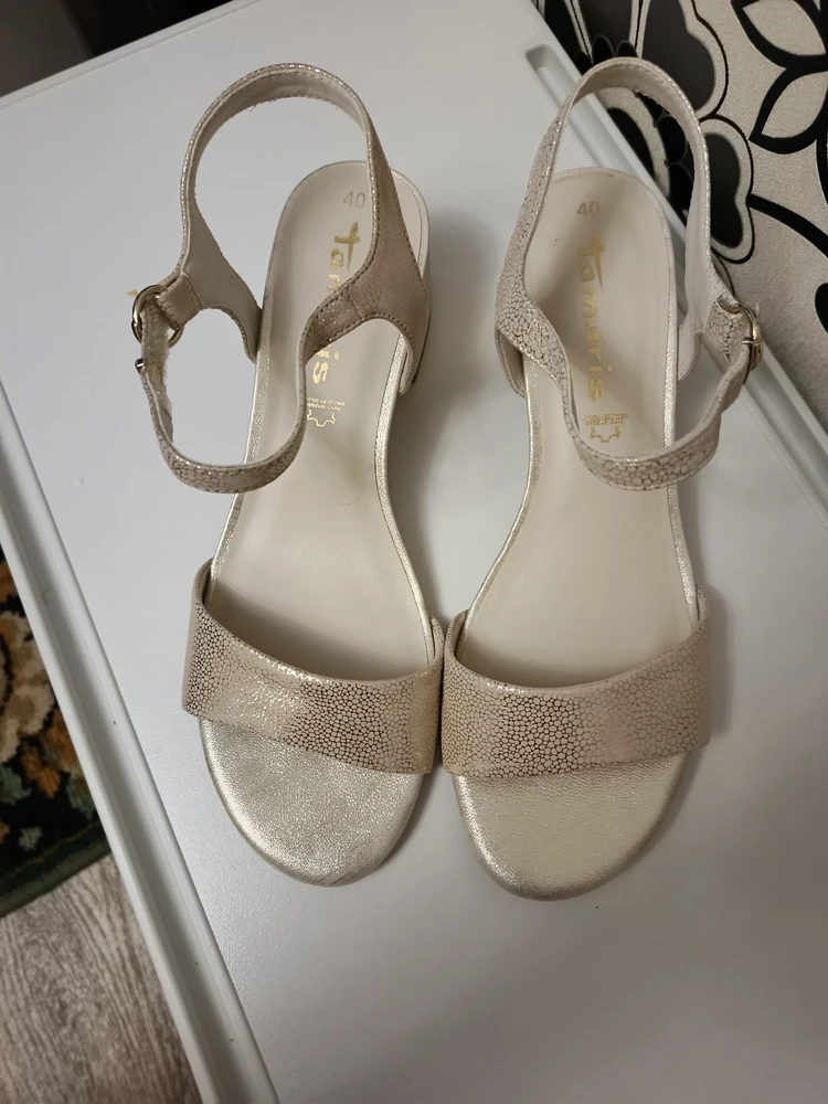 С брюками и костюмами - smart casual. Босоножки Tamaris на невысоком каблуке смягчат формальность в образе.
