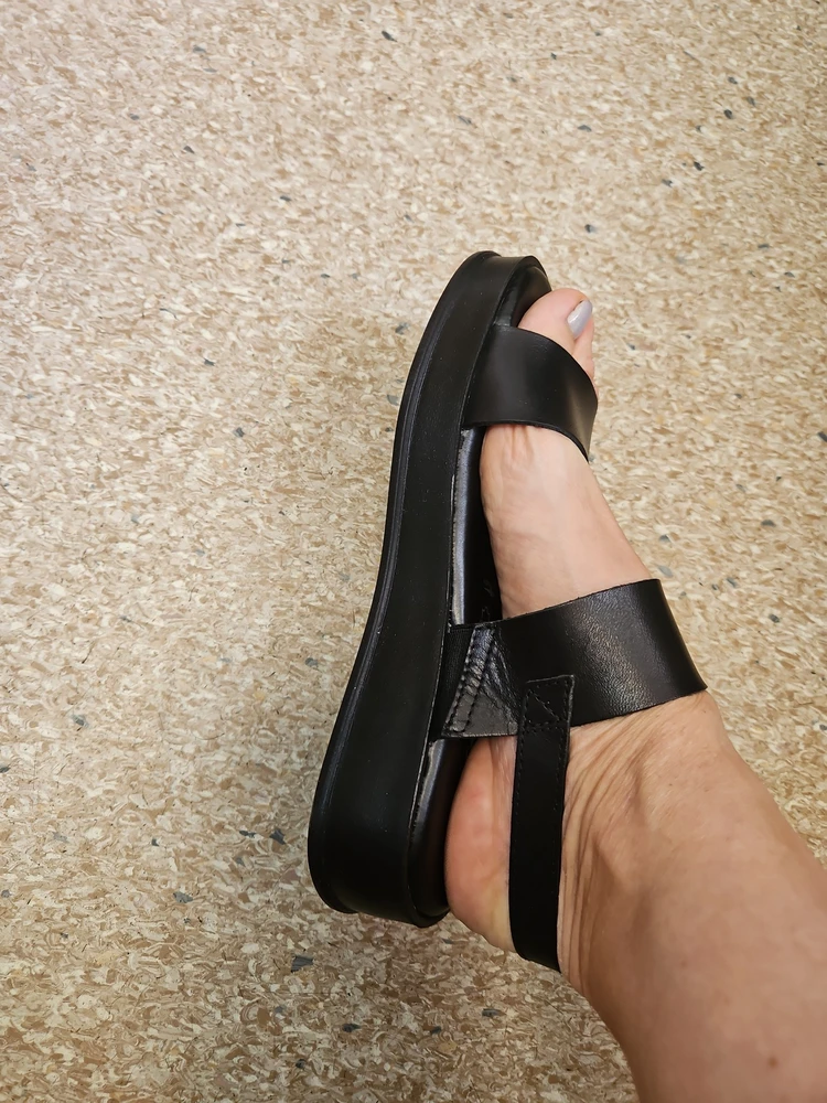 - Черные монохромные босоножки на 35 мм танкетке с широкими ремешками, сделанные из матовой мягкой натуральной кожи, — это не просто обувь, а настоящая находка для стильных образов. Удобная посадка регулируется с помощью пряжки, аккуратно обнимающей ногу, а мягкая стелька с технологией Touch-IT обеспечивает легкость и свободу каждого шага. Этот элегантный черный цвет идеально вписывается в любой стиль одежды, делая вас центром внимания в любой обстановке.