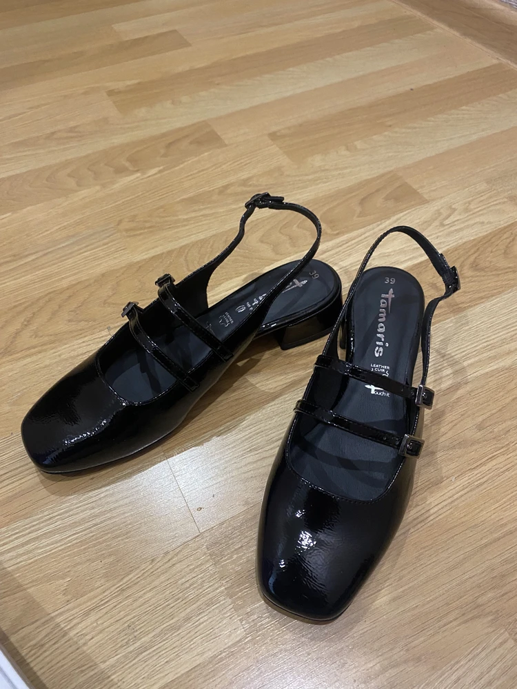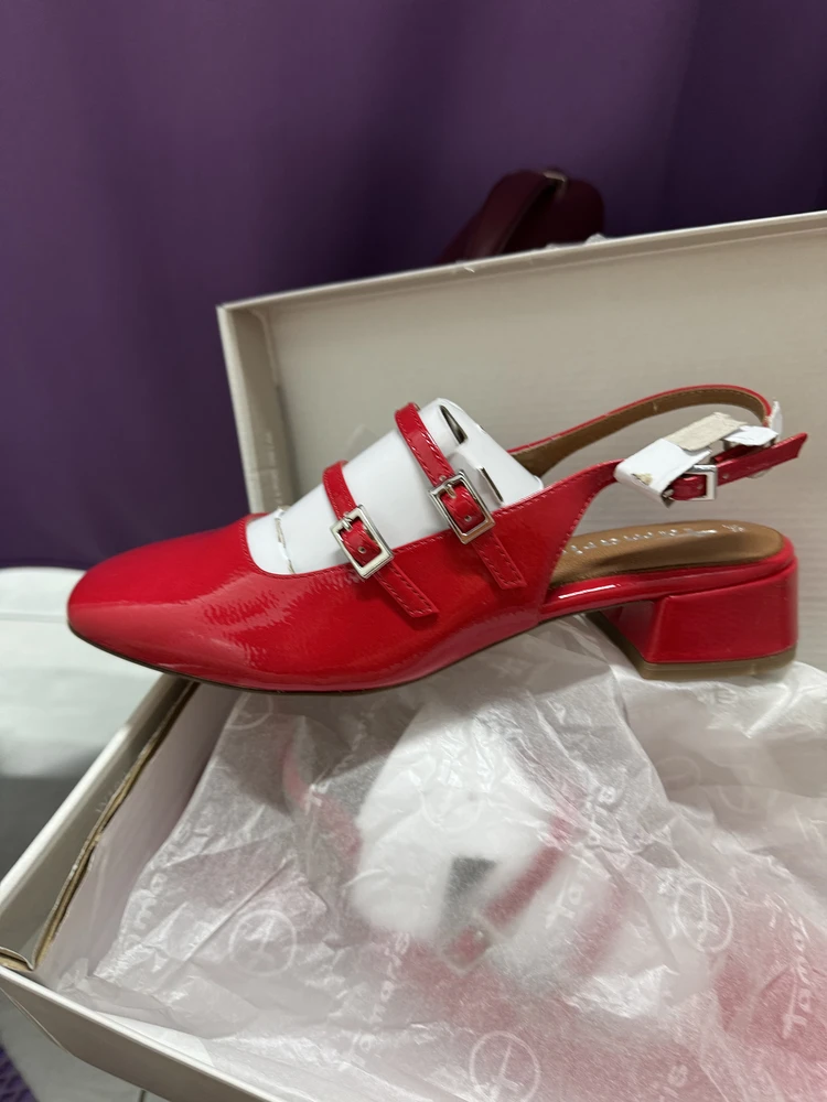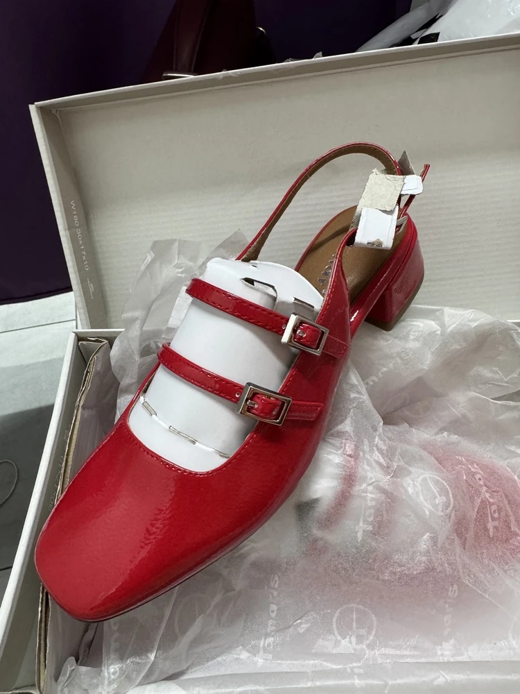 - Модные яркие красные слиенгбэки в стиле Мэри Джейн на устойчивом широком каблуке средней высоты дополнили вторым тонким ремешком. Слингбэки со слегка скошенным мысом и узким ремешком фиксирующим пару на стопе сшили из глянцевой телячьей кожи. Мягкая стелька с технологией Touch-IT адаптируется под индивидуальные особенности стопы, дарит легкость и свободу движения. Использование инновационных технологий Anti-Slide и Anti-Shokk гарантирует удобство и комфорт при ходьбе. Технология Anti-Slide повышает устойчивость благодаря противоскользящей набойке, а каблук с амортизирующей технологией Anti-Shokk снижает нагрузку на спину.