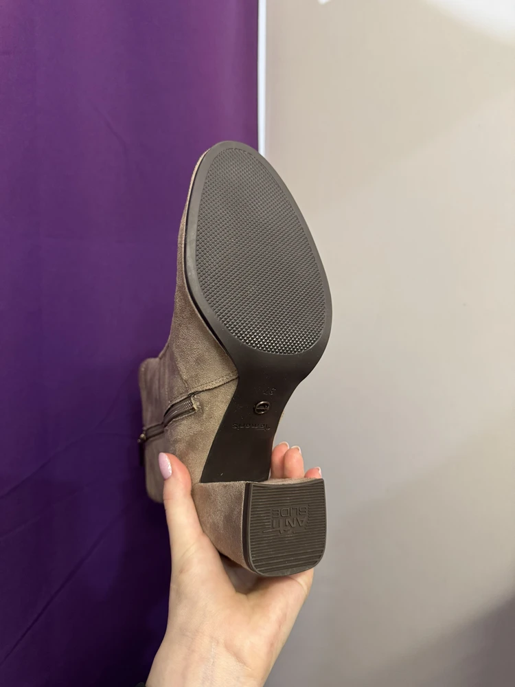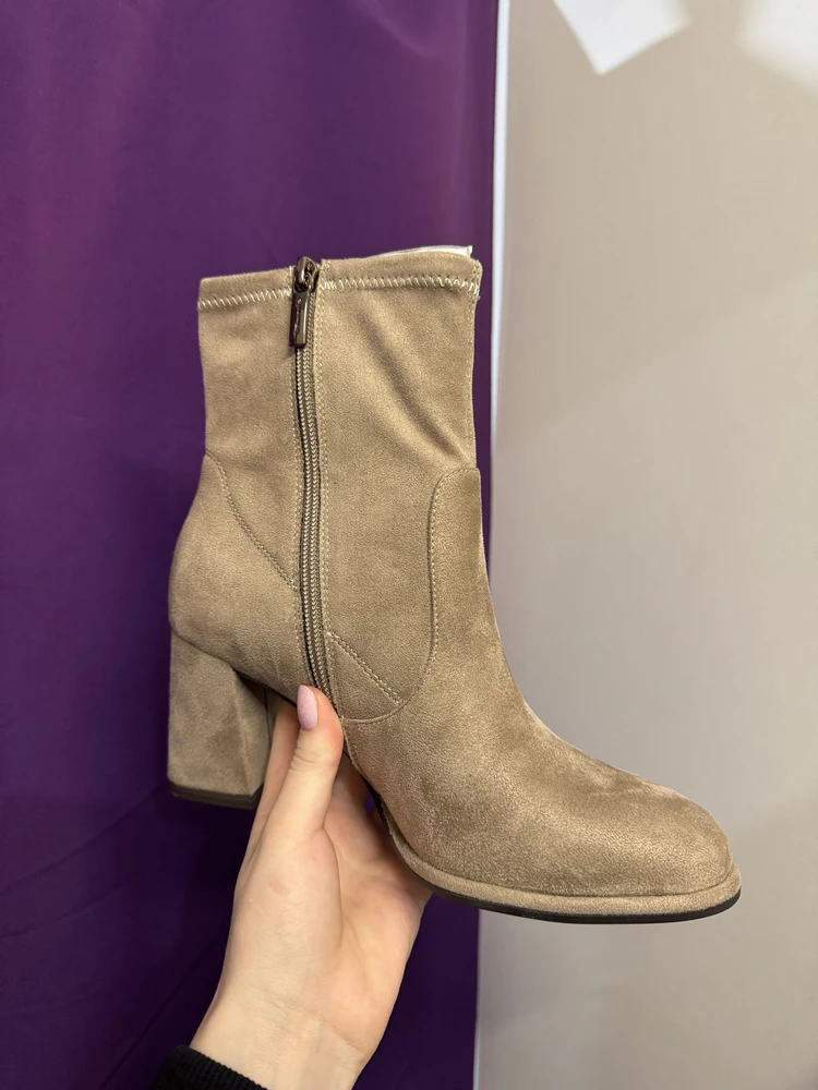 - Лаконичные женские ботильоны с миндалевидным мысом, на среднем устойчивом каблуке-столбик выполнили из дышащего микро фибрового плотного текстиля бежевого цвета. Чтобы элегантную осеннюю пару ботильонов с облегающим голенищем было удобно надевать и снимать, на внутренней боковой панели предусмотрели молнию. Нежная подкладка Comfort Lining заботиться о стопе внутри, добавляя тактильного комфорта, а мягкая стелька Touch It снижает нагрузку и адаптируется к особенностям стопы.