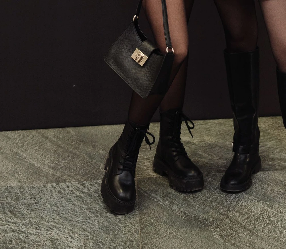 - Осенние женские ботинки выполнены из матовой натуральной кожи, отполированной до глянцевого блеска. Эта брутальная модная пара с высокой шнуровкой установлена на широкую подошву с глубоким фигурным протектором, что обеспечивает надежное сцепление и стабильность. Для облегчения процесса надевания и снятия с внутренней стороны предусмотрена молния. Мягкая шелковистая подкладка Comfort lining предлагает удивительный тактильный комфорт для стопы, а стелька с технологией Touch it снижает напряжение и обеспечивает легкость при каждом шаге, делая ботинки идеальными для осенних прогулок.