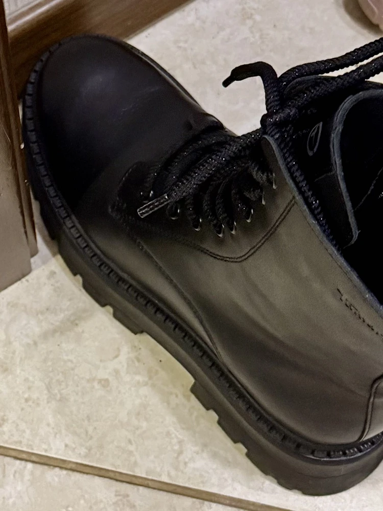 Недостатки: На одном ботинке сверху царапина, видно. Не критично, но не приятно.