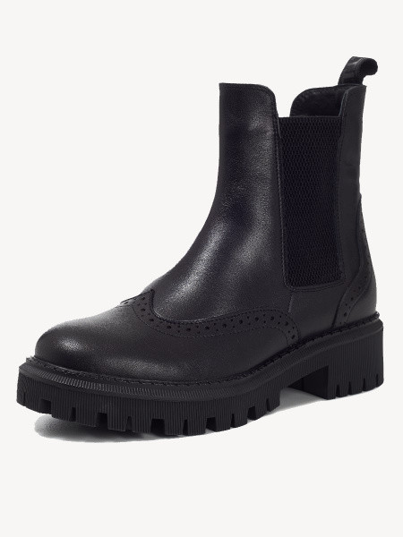 С костюмом из твида и черными челси Tamaris - добавьте к образу сумку-портфель и минималистичные украшения.