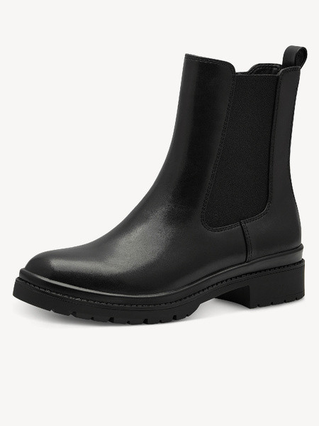 С костюмом из твида и черными челси Tamaris - добавьте к образу сумку-портфель и минималистичные украшения.