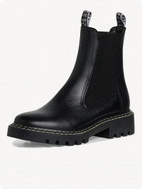С костюмом из твида и черными челси Tamaris - добавьте к образу сумку-портфель и минималистичные украшения.