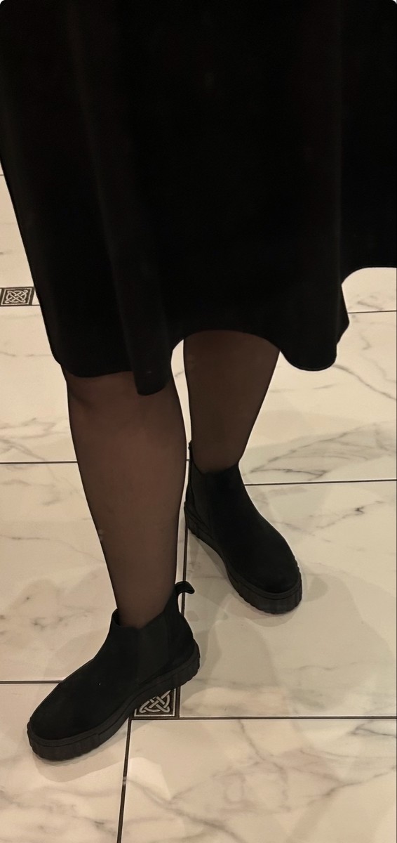 С костюмом из твида и черными челси Tamaris - добавьте к образу сумку-портфель и минималистичные украшения.
