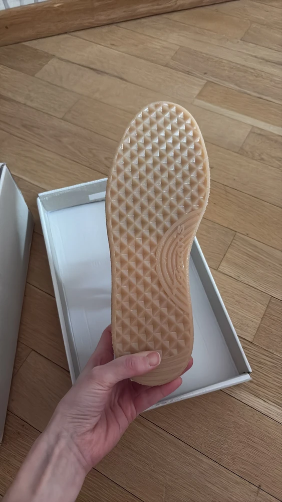 Кроссовки очень аккуратно сделаны, нет клея и ниток и посторонних запахов, цвет красивый, нежный. Кроссовки легкие, хоть подошва и резиновая. Для ходьбы по городу должны быть супер