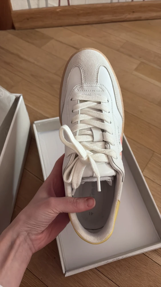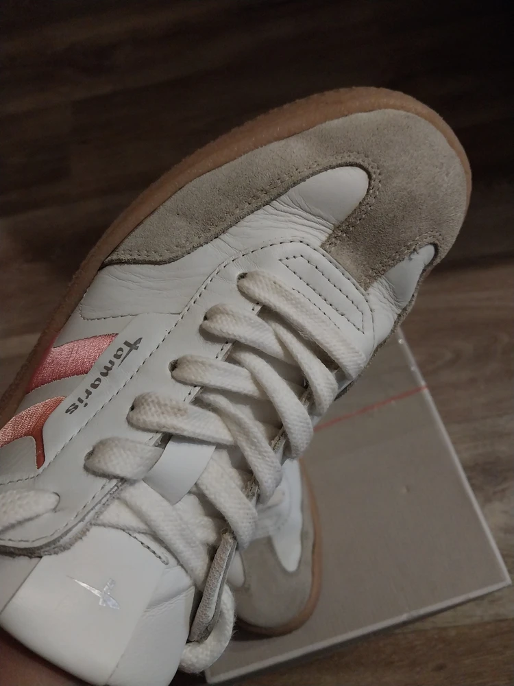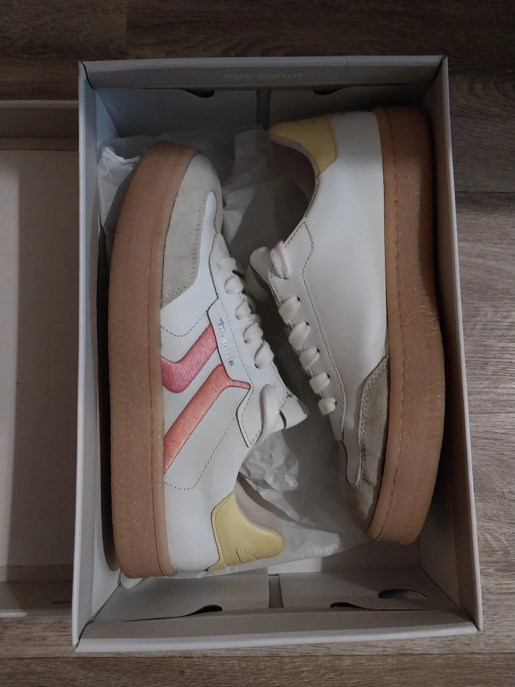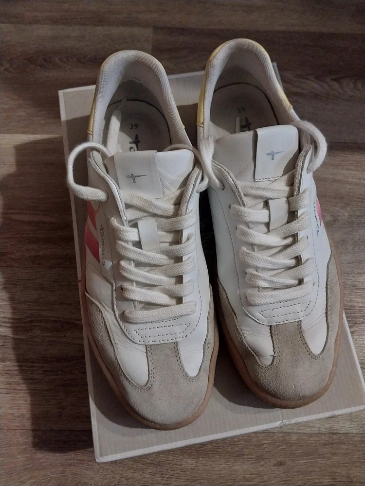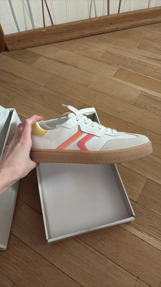 Мягкие, на 40 идут в размер. Были в разорванной коробке, что вызывает сомнения в том, что это Tamaris. А так хорошие кеды