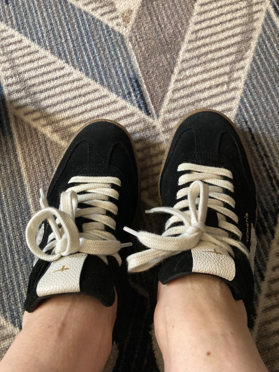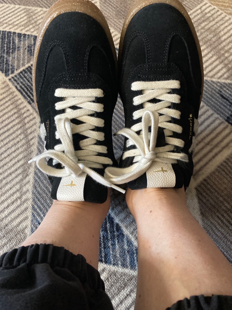 Разносились быстро, но до сих пор подтирают задники, хотя ношу размер в размер (с пластырями носить можно). Очень красивые, выглядят винтажно, белые полоски — это на самом деле вышивка