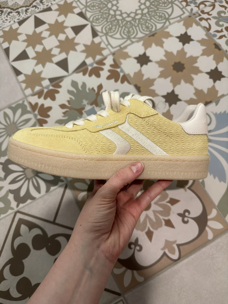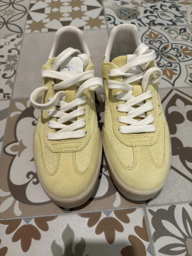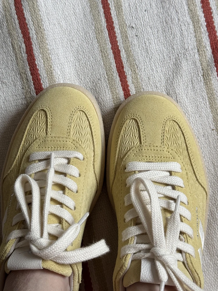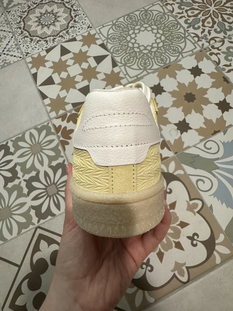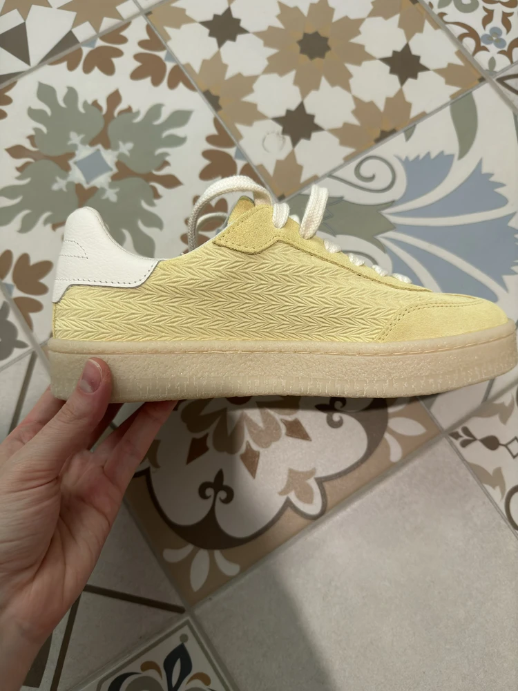 - Кеды на гибкой контрастной резиновой подошве, вдохновленные обувью для тенниса 197-х, выполнены из натурального бархатистого спилка модного пастельно-желтого оттенка. Акцент сделан как на декор белого цвета на кончике язычка, боковые панели и задник, а также структурную фактуры боковых панелей, придавая комфортной паре динамику городского образа жизни. За легкий и комфортный шаг отвечает съемная стелька Removable Sock, которая подстраивается под анатомию стопы. Специальная подкладка Comfort Lining делает пару невероятно удобной в носке, благодаря мягким подушечкам, которые защищают от неприятного давления в критических точках, обеспечивая правильную поддержку стопы.