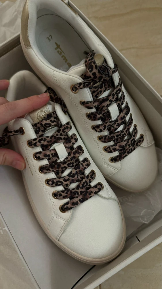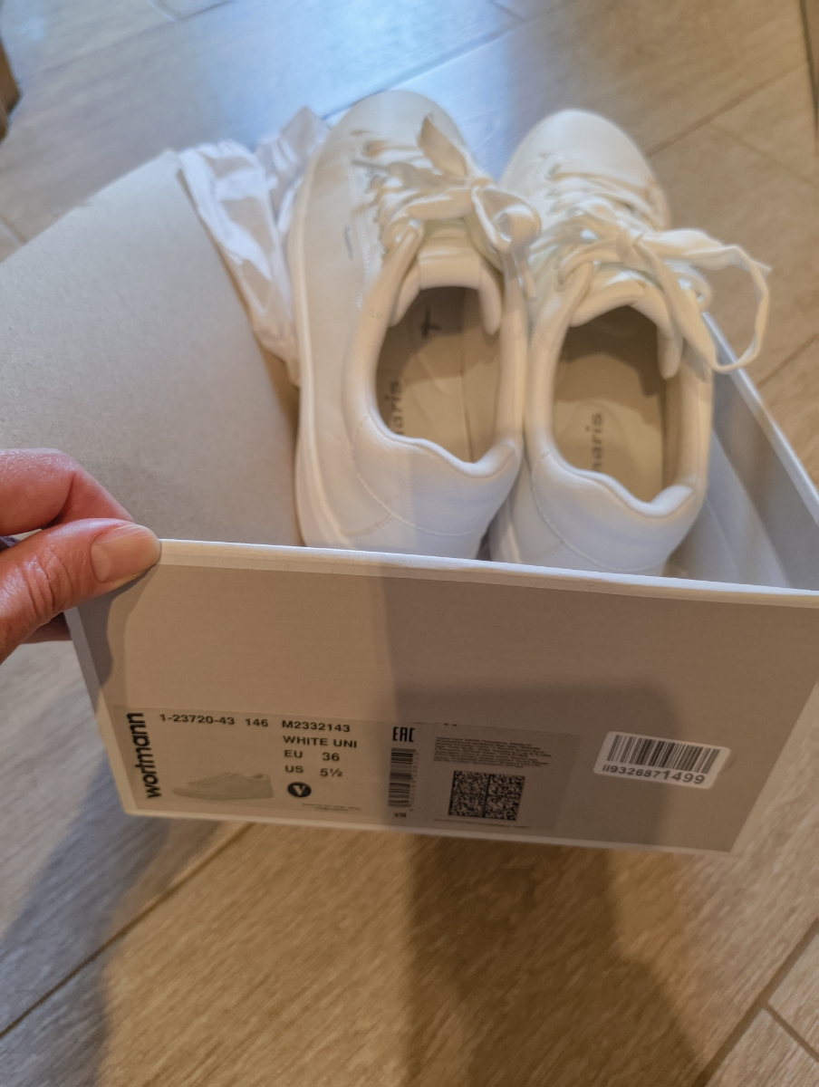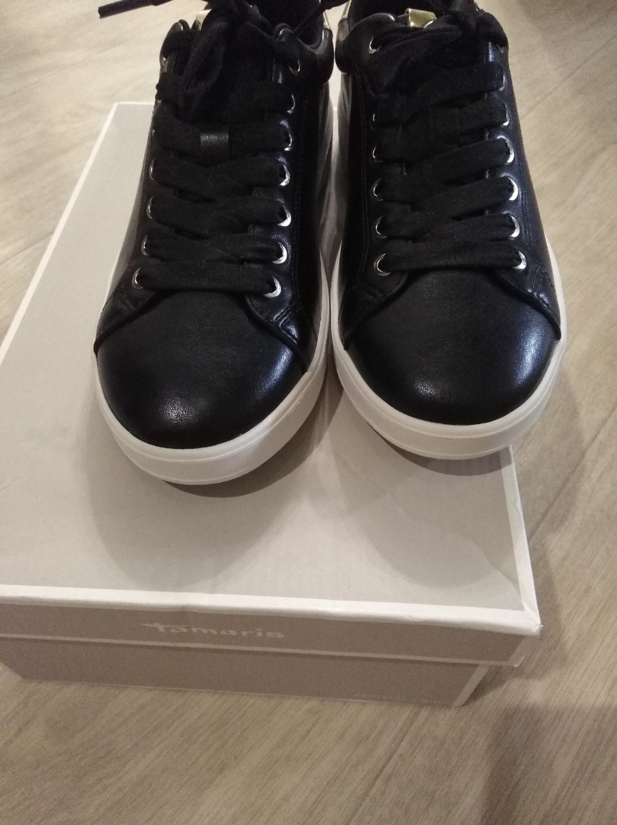 Обожаю кеды tamaris. С размерами никаких сюрпризов. На мой 39-40 их 39-й садится, как родной. Выглядят опрятно, стопу не увеличивают. Идеальная высота, не упираются в щиколотку. Салфетками для обуви прекрасно протираются. Выкупила 3 пары, все ношу с удовольствием. Коробки были драные (ну вдруг кому-то это важно). Но с обувью все ок