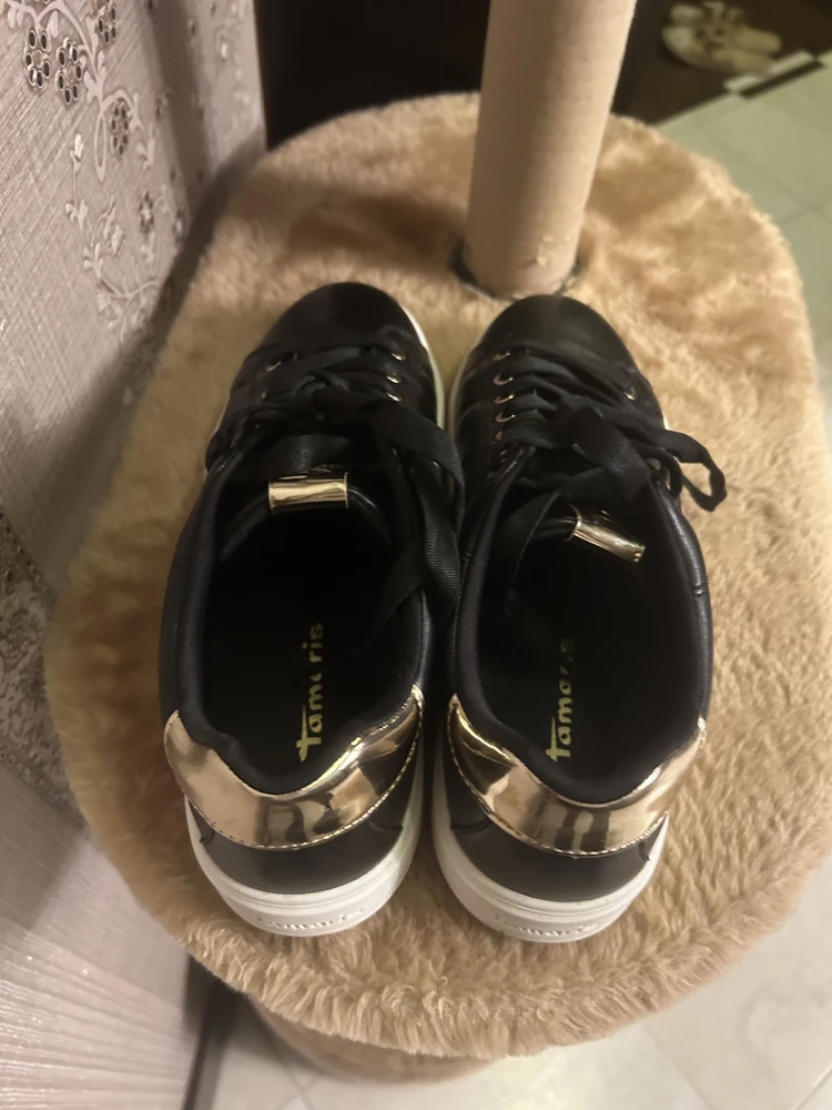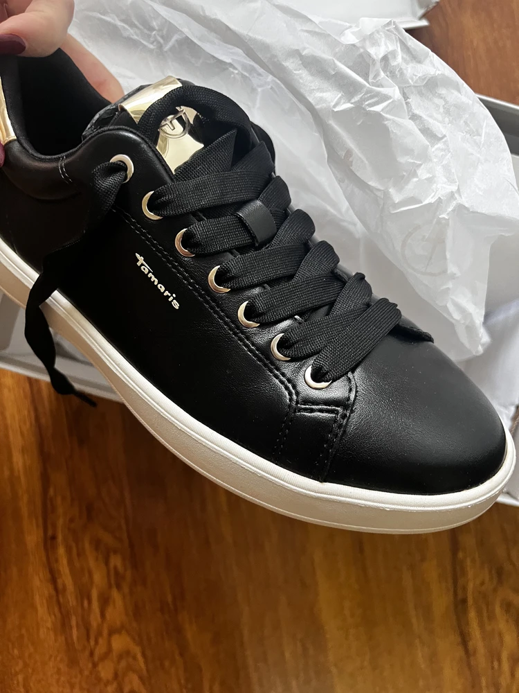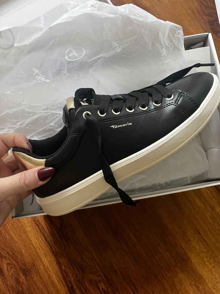 Марку tamaris знаю давно. Это мои вторые кеды tamaris. Модель удобная, мягкая стелька поддерживает стопу. Сами кеды легкие, мягкие на мою узкую ногу без взьема подошли. Пришли абсолютно новые, хорошо набиты. На стопу 24,3см 38размер подошёл. Спасибо продавцу и производителю!