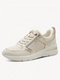 - Элегантные бежевые кроссовки на танкетке привлекут внимание тех, кто ценит стиль и комфорт. Модель выполнена из качественной веганской кожи. Комфортная подошва расширена у пятки и сужается к носку, создавая изящный силуэт и равномерно распределяя вес тела, благодаря чему ноги не устают даже при длительной ходьбе. Боковая молния обеспечивает удобство надевания и подходит для любого подъема стопы, а шнуровка гарантирует надежную фиксацию. Анатомически правильная «СЪЕМНАЯ СТЕЛЬКА» / Removable Sock поддерживает стопу при движении, позволяет вынимать стельку для получения дополнительного внутреннего объема или гигиенической очистки. Штробельная конструкция подошвы добавляет гибкости носочной части, обеспечивая дополнительный комфорт. Пастельный оттенок делает эту пару универсальной для современных образов. Эти кроссовки на танкетке — стильная обувь для активных женщин, стремящихся быть модными и уверенными в себе. Дополнит любой повседневный гардероб модницы – сочетайте их с брюками, джинсами, платьями.