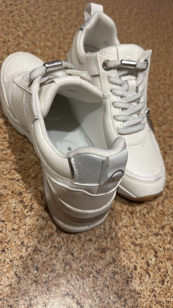 Красивые, аккуратно смотрятся на ноге, удобные при ходьбе, толщина пятки 5см, толщина подошвы 3см. Вставки по бокам и на мыске из гладкого материала, типа велюра, но плотного. Молния немного туговата, но в своих старых кроссах Тамарис пользуюсь шнурками. На свой 38 беру 39, меняю стельки на свои индивид. ортопедические. Кто ими не пользуется, то 38 подойдет. Подъем хороший, язычок и всё внутри с мягкой прокладкой. Посмотрим, как будут весной в носке.