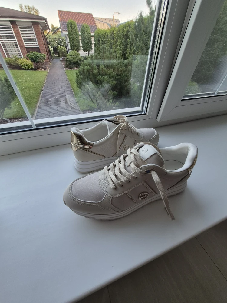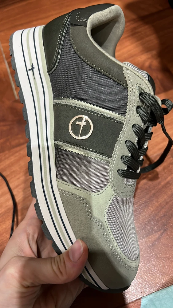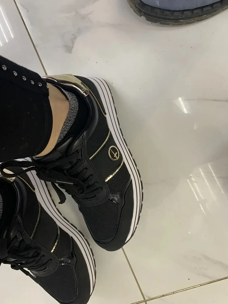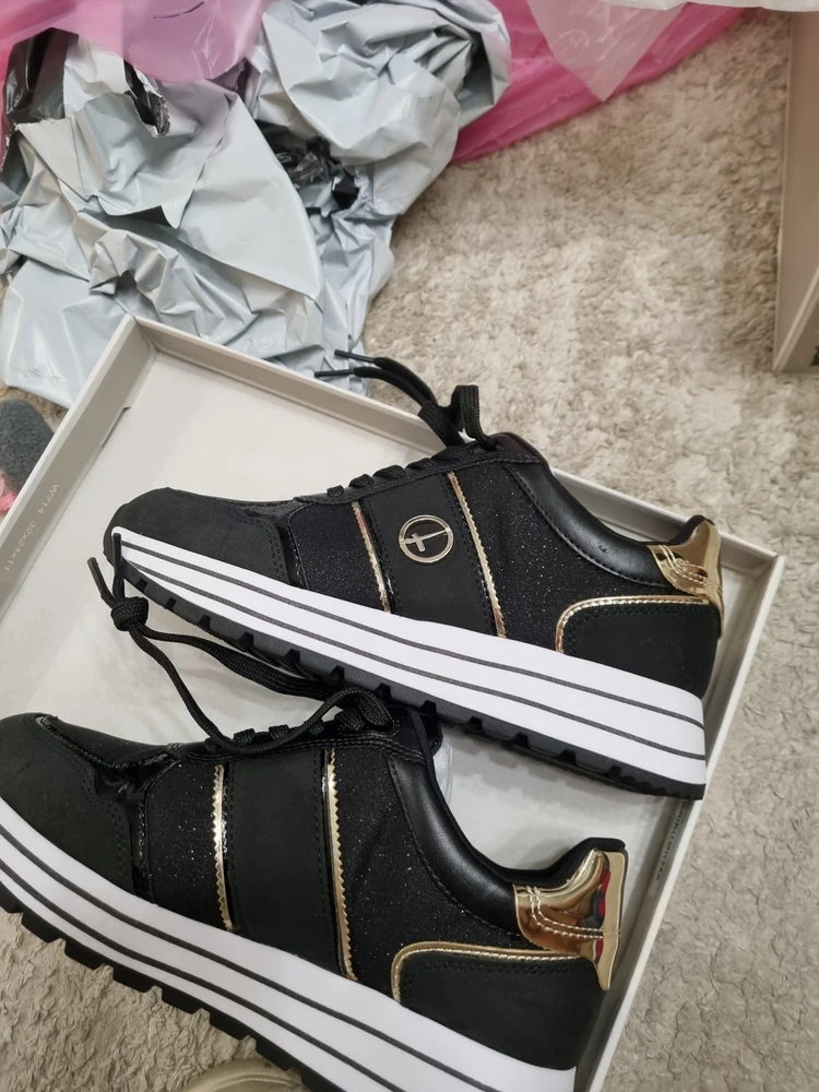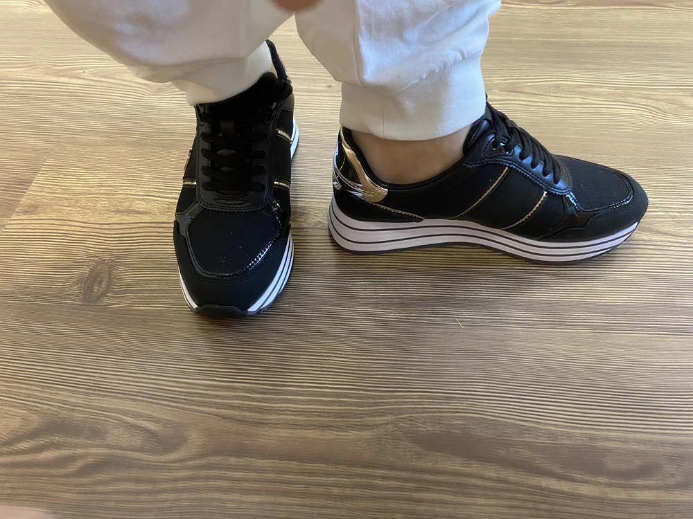 С верхней одеждой - пальто (бежевое, оливковое) и черные кроссовки - баланс элегантности и удобства. Пуховики или парки отлично сочетаются с утепленными кроссовками Tamaris.