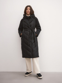 Пуховик с поясом и кокеткой. Капюшон отстегивается, превращая пуховик в красивое пальто. Карманы на магните с флисом. Есть внутренний карман с левой стороны. На рукавах трикотажная резинка, благодаря чему руки всегда останутся в тепле. В стилистике объединили элементы женственного и актуального тренча с невесомым и элегантным пуховиком.