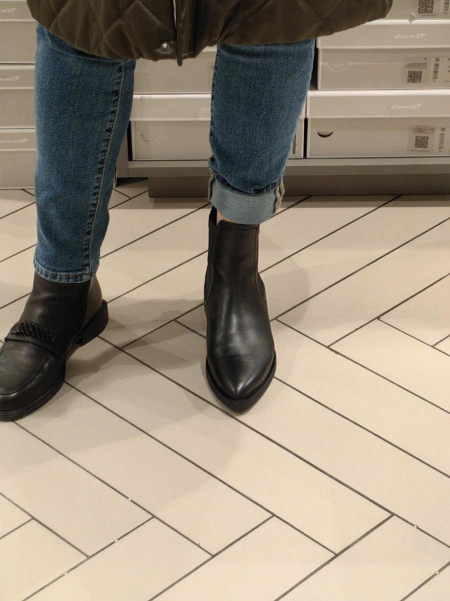 С костюмом из твида и черными челси Tamaris - добавьте к образу сумку-портфель и минималистичные украшения.