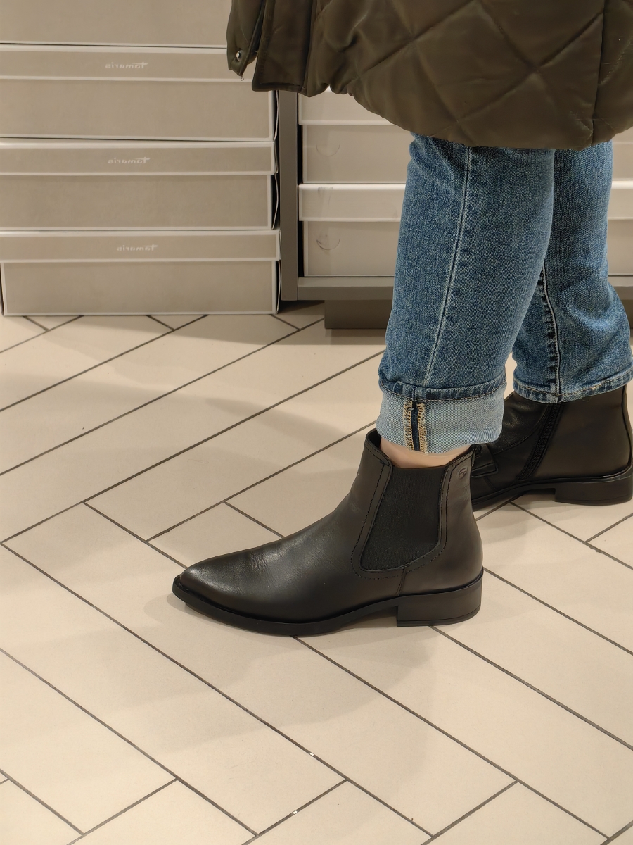 - Для изготовления этих осенних женских челси с миндалевидным мысом использовали натуральную гладкую кожу черного цвета. Стильную модную пара с эластичными вставками по бокам и короткой петлей сзади поставили на литую гибкую подошву с широким каблуком. Мыс декорировали металлической накладкой для придания паре индивидуальности и шарма. Мягкая стелька Touch дарит комфорт с первой примерки.