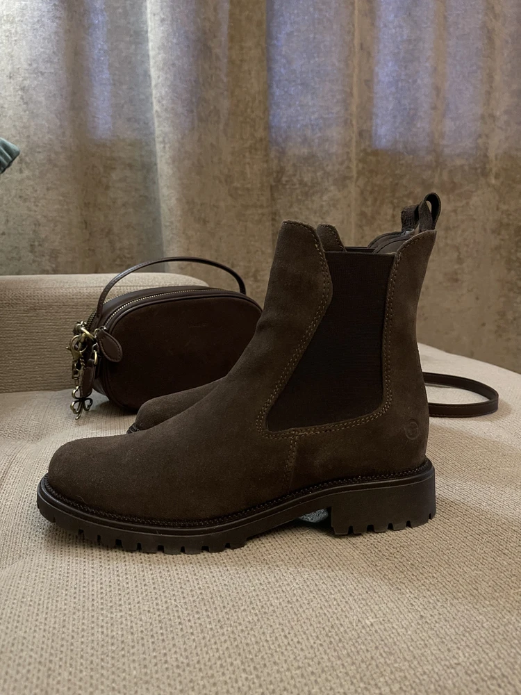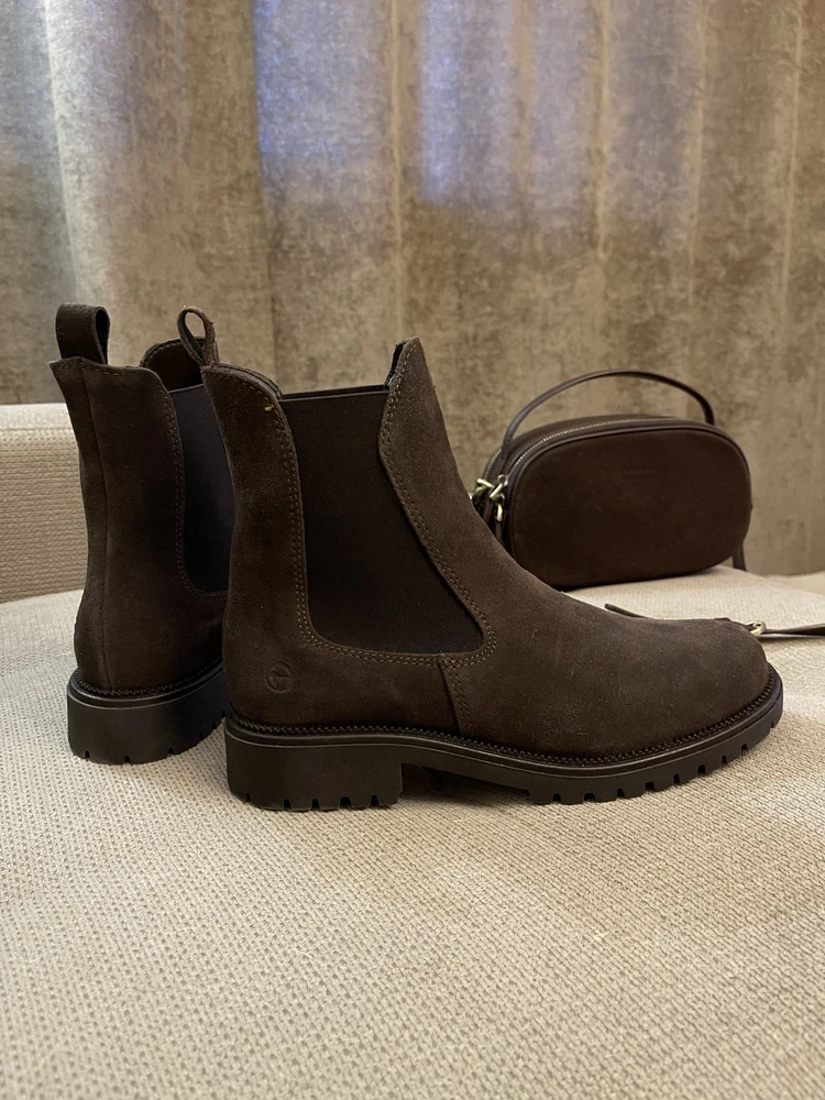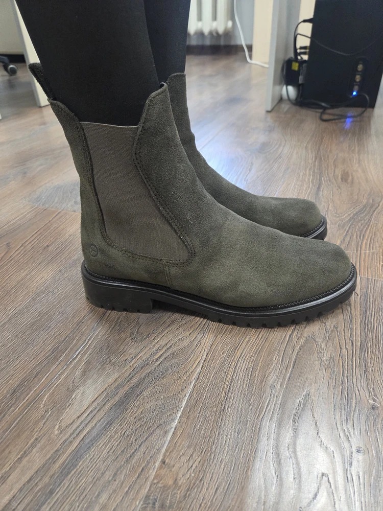 Настоящие замшевые Челси фирмы Тамарис... , мерила в магазине со скидкой за 8900, .. Нашла на Вайлдберриз за 6500 , оочень довольна , один в один.., очень удобные( обожаю эту марку) размер в размер , на мою узкую ногу ... Спасибо