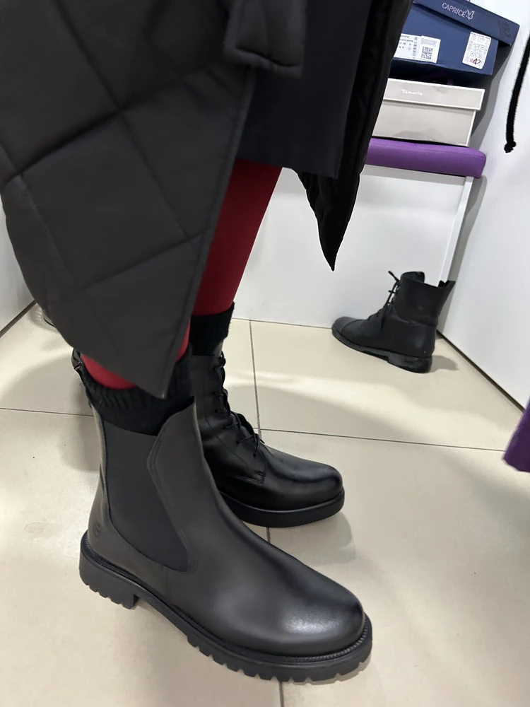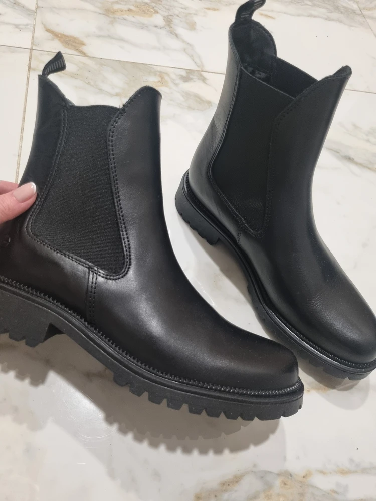 Tamaris как всегда на высоте. И качество и кожа отличные. Удобные. Из всех моделей челси выбрала именно эти. Одеваются легко. Спасибооо
