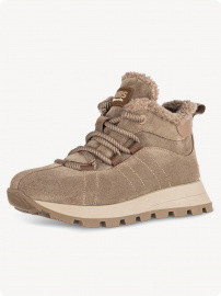 С верхней одеждой - пальто (бежевое, оливковое) и черные кроссовки - баланс элегантности и удобства. Пуховики или парки отлично сочетаются с утепленными кроссовками Tamaris.