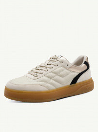 - Бежевые женские городские кеды отличный вариант базы для повседневных образов и для офиса с нестрогим дресс-кодом. Удобная комфортная пара выполнена из микса натуральной и веганской кожи, на термопластичной резиновой подошве с литерой в пяточной зоне. Стеганые берцы и динамичная геометричная вставка в пяточной зоне отсылает к модному ретро-стилю. Лаконичный дизайн завершает контрастная шнуровка в тон вставки по канту. Пару легко сочетать с любым предметом повседневного гардероба, в особенности с денимом.