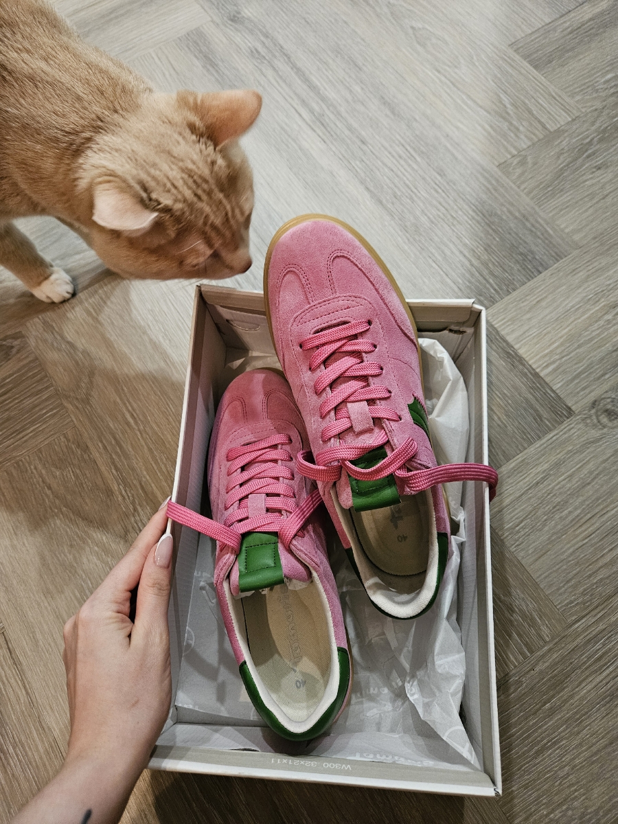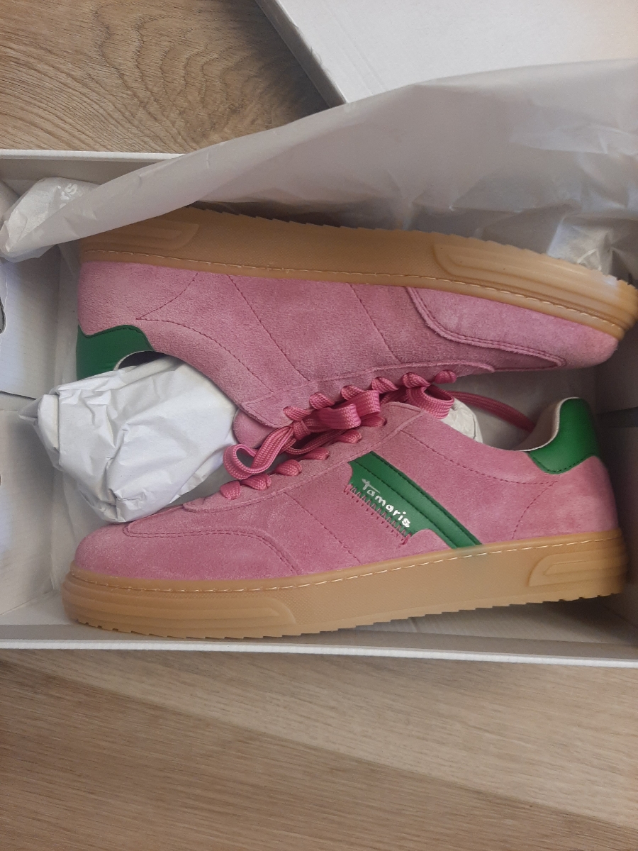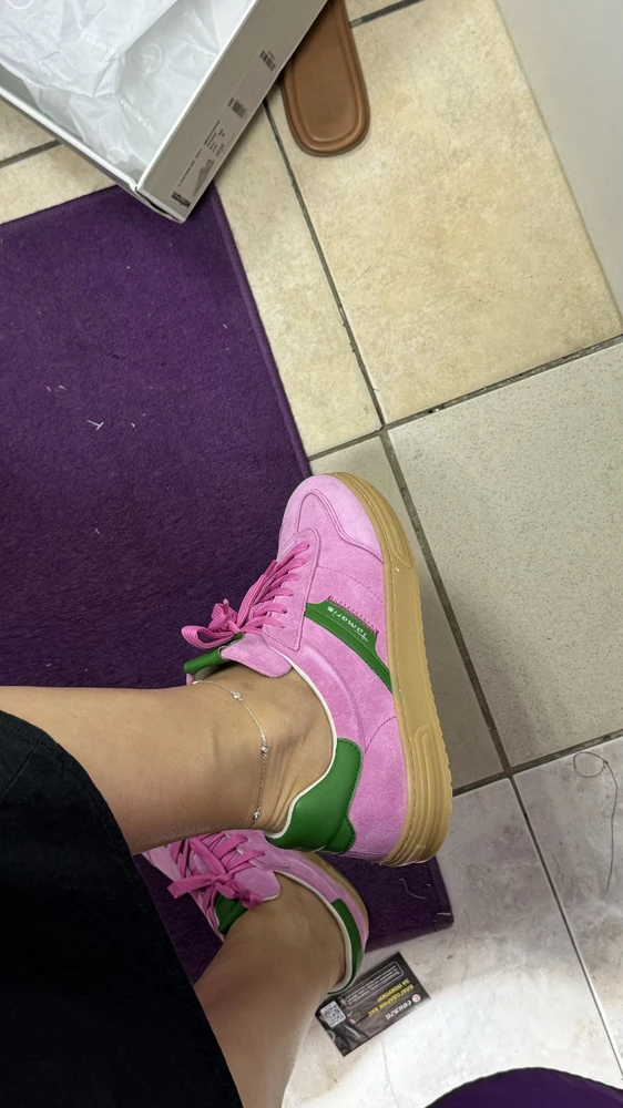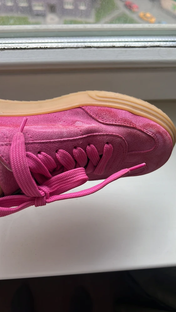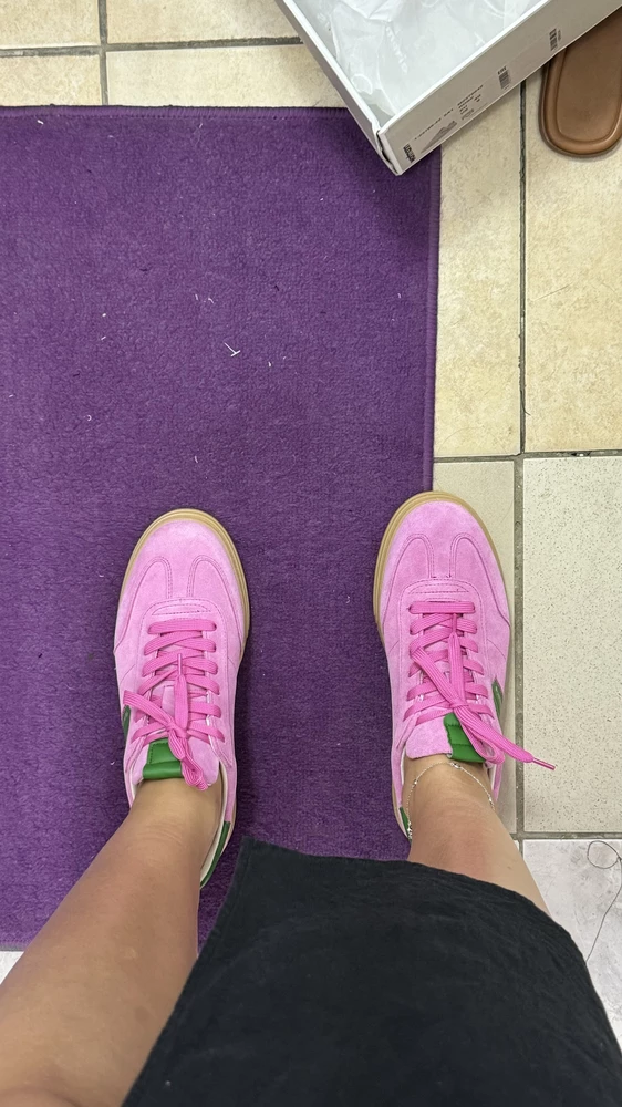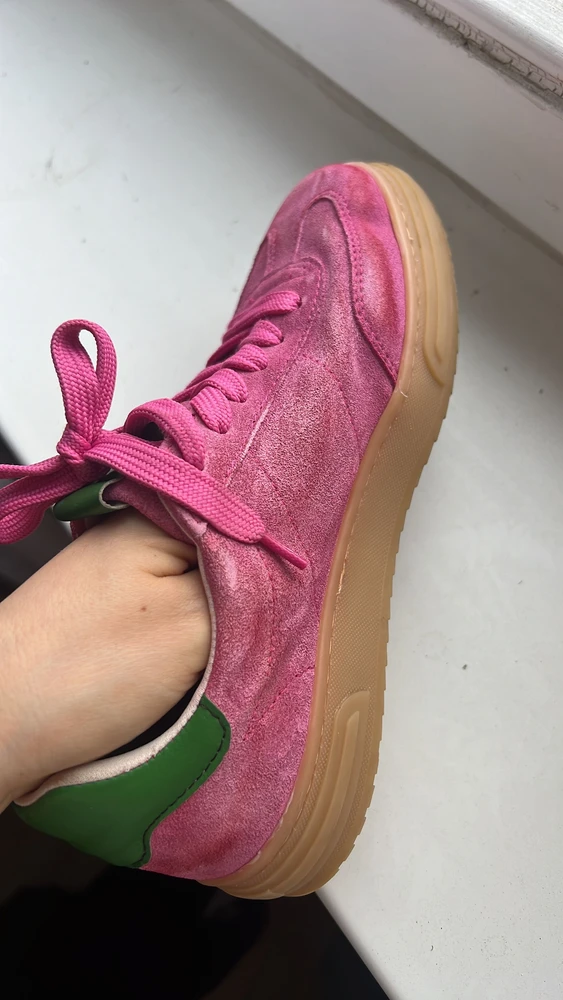 Недостатки: Шла домой и случайно попала под дождь, не скажу что сильный, иду и вижу, что с них прям розовый цвет стекает на асфальт, по итогу пришла домой, они высохли и стали полублеклыми . Продавец категорически отказывается возвращать деньги хотя я их вот толькт купила , кто ж знал что я под дождь попаду, так обидно . Еще увидела, что подошва начала немного отходить , но и бед этого их только на помойку. Деньги конечно не малые .