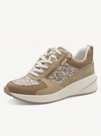 С верхней одеждой - пальто (бежевое, оливковое) и черные кроссовки - баланс элегантности и удобства. Пуховики или парки отлично сочетаются с утепленными кроссовками Tamaris.