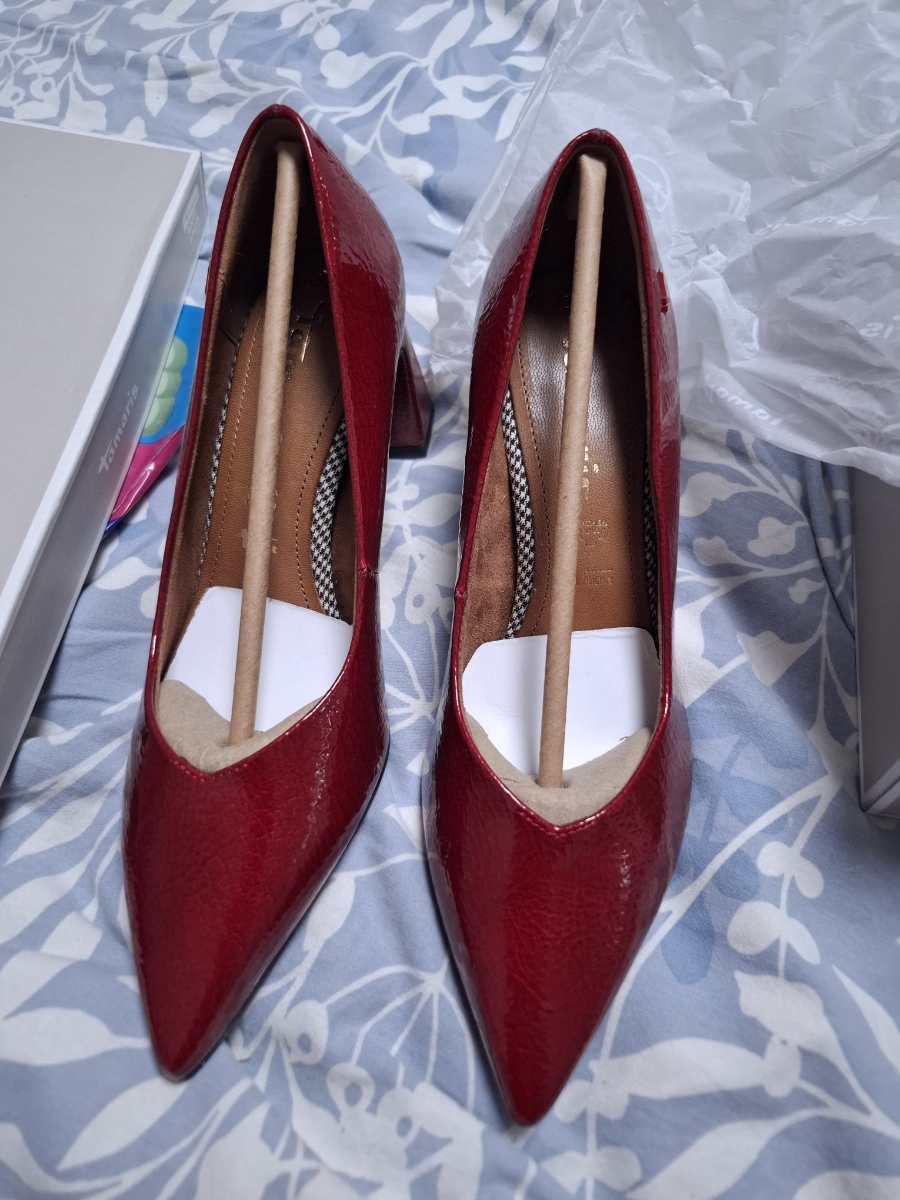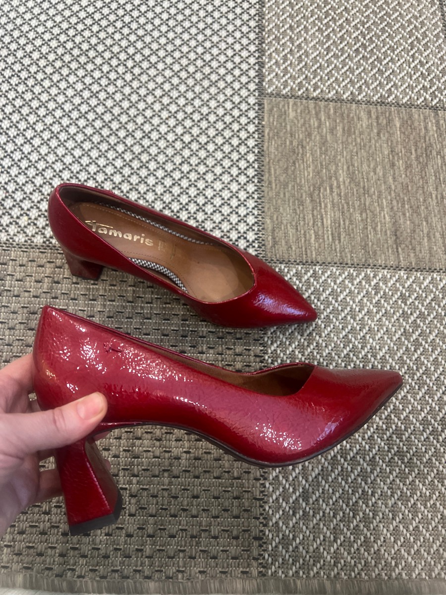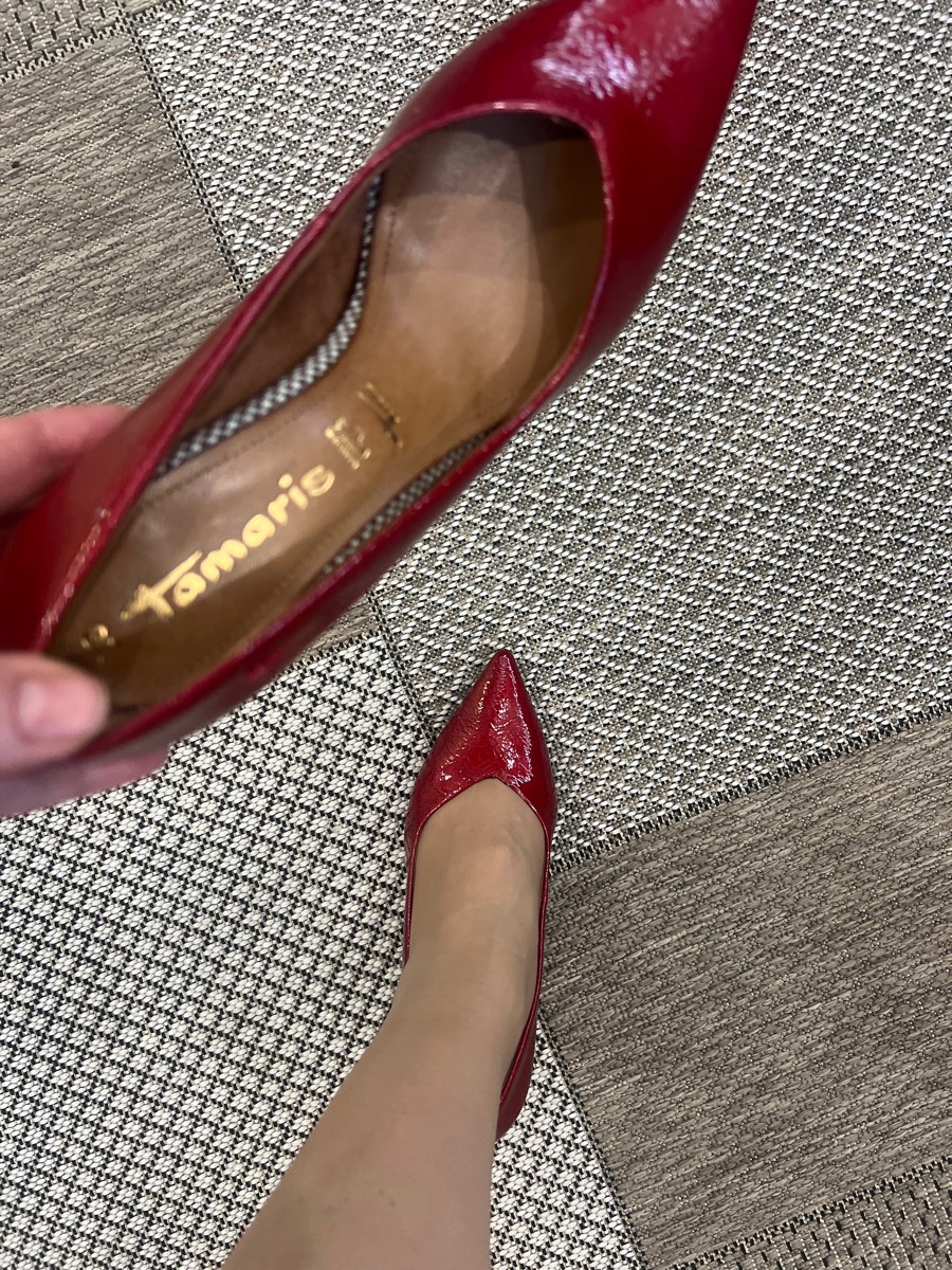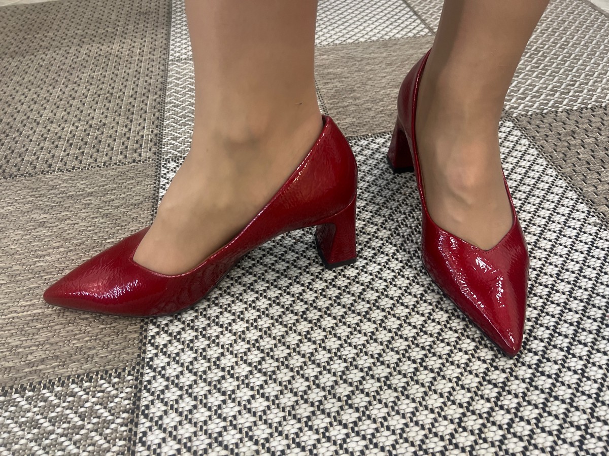Туфли очень красивые и удобные. Каблук устойчивый. Цвет насыщенный, лак хороший. Подойдут к праздничному наряду и будут дополнять официальный темный костюм, являясь яркой деталью в образе.