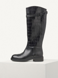 Зимой сочетайте утепленные сапоги с пуховиком, поясом и брюками-палаццо.